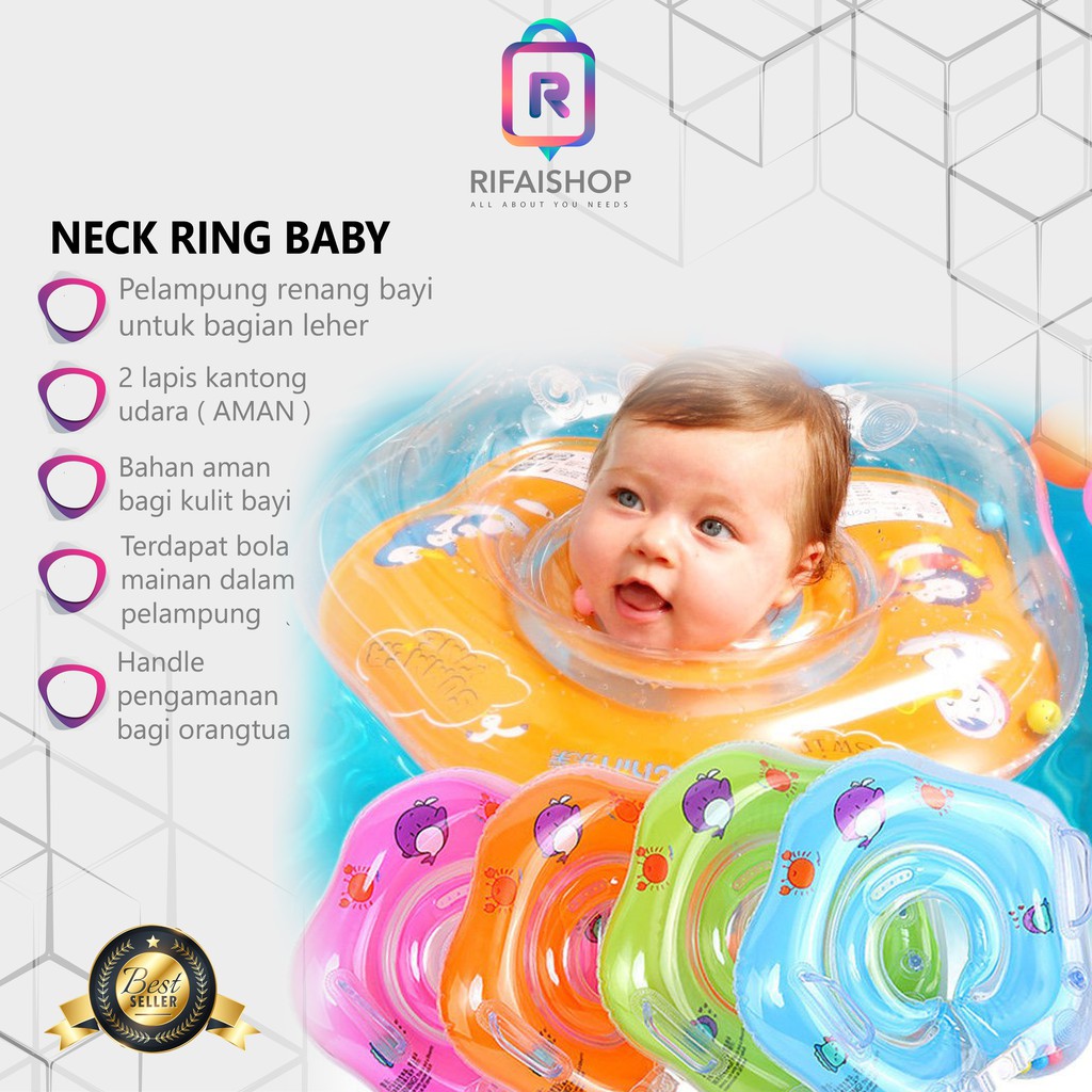 Ban pelampung biasanya digunakan untuk anak berenang sekarang bayi dan balita sangat baik untuk berenang, maka itu sekarang banyak pelampung khusus untuk bayi. Neck ring merupakan ban renang yang khusus untuk bayi, seperti namanya dalam penggunaannya hanya perlu dipasangkan di leher bayi. Tersedia peralatan mandi dan renang bayi dari handuk, potty training, neckring, pompa angin, bak renang tiup legging baby juga ada. Pada dasarnya perkembangan ilmu pengetahuanlah yang melandasi trend tersebut. Cari ban renang di indonesia, distributor ban renang, supplier, dealer, agen, importir, kami mempunyai database terlengkap untuk ban renang indonesia.